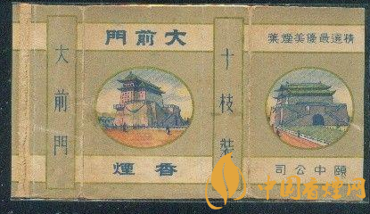 1916年,“大前門”卷煙由英美煙公司創(chuàng)牌。英美煙公司設(shè)計的煙標(biāo),主版畫面為北京天安門南側(cè)的正陽門雄姿,副版圖案是建于明代的箭樓。因北京人習(xí)慣稱正陽門為“前門樓子”,故卷煙商標(biāo)被命名為“前門”。