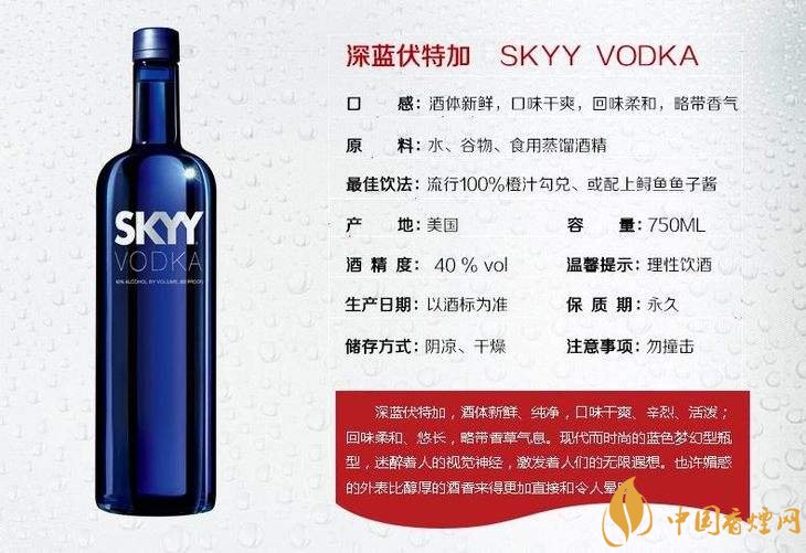 Skyy深藍伏特加的價格:45.00元/瓶;