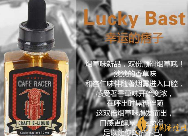 美國(guó)金獎(jiǎng)煙油有哪些?美國(guó)金獎(jiǎng)電子煙油Cafe就是其中一款,CAFE RACER摩托車(chē)系列煙油為加州恩西尼塔斯的始創(chuàng)者手工制作,均使用方形瓶裝,全系列有3款口味并都貼有印著機(jī)車(chē)圖案的標(biāo)簽,為:Lucky13(幸運(yùn)13)、Pech guzzi(桃子機(jī)車(chē),guzzi為意大利語(yǔ)的摩托車(chē))和Yogurt bomb(優(yōu)格炸彈),3款煙油的PG:VG均為30:70,適用于儲(chǔ)油和滴油霧化器,其中的Lucky13為美國(guó)峰會(huì)金獎(jiǎng)煙油上的煙草口味金獎(jiǎng)得主。
