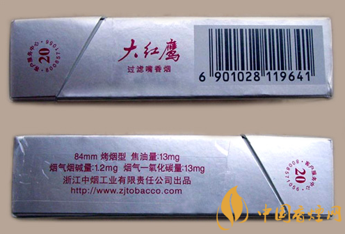 大紅鷹精品香煙,煙支長(zhǎng)84mm,濾嘴長(zhǎng)20mm,點(diǎn)燃,煙只的吃味平滑,香氣飄逸順暢、口感略淡,不知和降焦有沒有關(guān)系?;匚稁缀醺杏X不到。下面我們一起來(lái)看大紅鷹銀的參數(shù)信息:焦油量:13mg. 煙堿量:1.2mg. 一氧化碳量:13mg.
