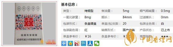 | 類型 :烤煙型 | 焦油量 :5mg | 煙氣煙堿量 :0.5mg | 一氧化碳量 :8mg |