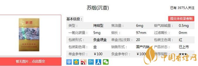 蘇煙(沉香)以沉香奇特的香氣為特征香,以低焦油、低危害、環(huán)保健康為開(kāi)發(fā)設(shè)計(jì)目標(biāo)和理念。以國(guó)外進(jìn)口和我國(guó)不同地區(qū)優(yōu)質(zhì)煙葉為原料,采用多維的配方技術(shù)調(diào)配和獨(dú)特的加工工藝精制而成,在突出產(chǎn)品煙草自然本香的基礎(chǔ)上,再以名貴的沉香賦予其獨(dú)特的香氣風(fēng)格。下面就由香煙網(wǎng)小編帶大家一起來(lái)了解蘇煙沉香的相關(guān)信息。