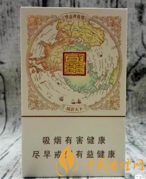 煙盒正反兩面的主圖,是抽象地球的俯視畫面。其風(fēng)格類似于中學(xué)課本里的地殼和版塊運(yùn)動(dòng)畫法,也像世界航海畫面。正面是北半球,反面是南半球。南北半球畫面中間均為印章式的“國(guó)喜”字樣。此款的官方叫法是大國(guó)喜,也可以稱之為國(guó)喜天下,概因其下方的四字。