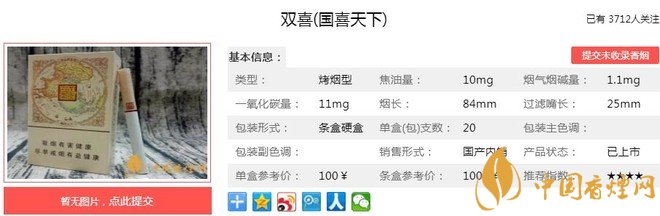以上便是由香煙網(wǎng)小編為大家介紹的關(guān)于雙喜國(guó)喜天下多少錢一包 雙喜國(guó)喜天下口感及參數(shù)的相關(guān)信息,想要了解更多有關(guān)內(nèi)容請(qǐng)點(diǎn)擊:七匹狼通??诟屑皡?shù) 七匹狼通福價(jià)格21元一包