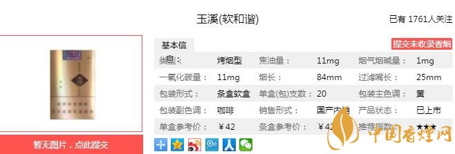 以上便是由香煙網(wǎng)小編為大家介紹的關(guān)于玉溪軟和諧多少錢一包 玉溪軟和諧口感及參數(shù)介紹的相關(guān)信息,想要了解更多有關(guān)內(nèi)容請(qǐng)點(diǎn)擊:黃金葉洛陽牡丹細(xì)支HAPPY多少錢 洛陽牡丹細(xì)支HAPPY口感分析