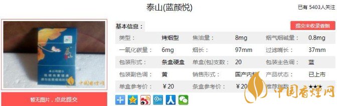 以上便是香煙網(wǎng)小編為大家介紹的關(guān)于泰山藍(lán)顏悅多少錢 泰山藍(lán)顏悅價(jià)格及口感品吸的相關(guān)信息,看完之后大家是不是對(duì)于泰山(藍(lán)顏悅)這款香煙的相關(guān)信息更加了解呢。大家還想查詢更多的相關(guān)內(nèi)容歡迎點(diǎn)擊:泰山儒風(fēng)多少錢 泰山儒風(fēng)最新口感評(píng)測(cè)