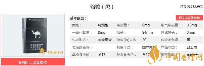以上便是香煙網(wǎng)小編為大家介紹的關(guān)于駱駝香煙價(jià)格多少 黑駱駝只要17元一包!的相關(guān)信息,看完之后大家是不是對于駱駝(黑)這款香煙的相關(guān)信息更加了解呢。大家還想查詢更多的相關(guān)內(nèi)容歡迎點(diǎn)擊:無過濾嘴駱駝煙多少錢(20-50元) 無嘴駱駝煙價(jià)格表和圖片(3款)