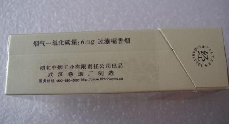 6、黃鶴樓1916圖片底部為品名“黃鶴樓”和鋼印碼‘10203’。一側(cè)為條碼與理化指標中的焦油量:10MG 煙氣煙堿量:1.0MG,另一側(cè)為理化指標中的煙氣一氧化碳量:10MG和客服熱線與公司名稱、網(wǎng)址。