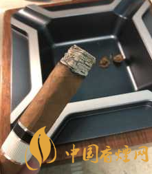 茄體呈現(xiàn)為魚(yú)雷壯,小金字塔卷工很棒,茄衣呈現(xiàn)淺棕色,茄帽處理很精細(xì)。綠色的腰花在棕色茄衣映襯下相當(dāng)亮眼,整體搭配協(xié)調(diào)而美觀。