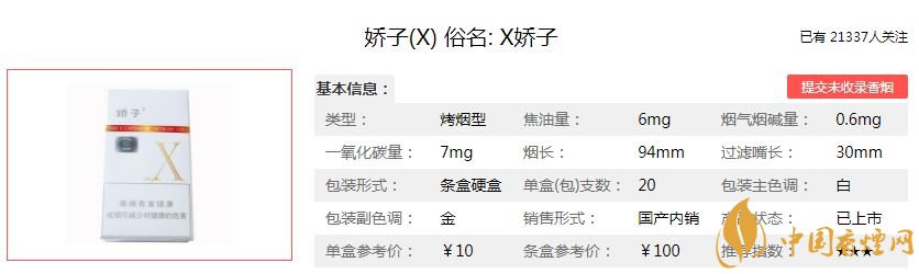 以上就是由香煙網(wǎng)小編為大家整理介紹的關(guān)于嬌子X香煙的價格的相關(guān)內(nèi)容介紹。由于各地經(jīng)濟(jì)水平不同,香煙的價格有些許差異。你所在的地區(qū)這款香煙最新價格是多少?歡迎大家在評論區(qū)留言告訴小編哦。