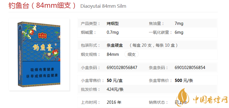 釣魚(yú)臺(tái)細(xì)支香煙核心參數(shù)