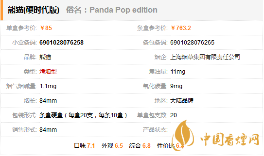熊貓(硬時代版)煙(俗稱:Panda Pop edition)是上海煙草集團有限責任公司旗下品牌熊貓香煙推出的一款焦油含量11mg的烤煙型香煙。下面小編就為大家講解一下這款香煙的價格以及參數(shù)。