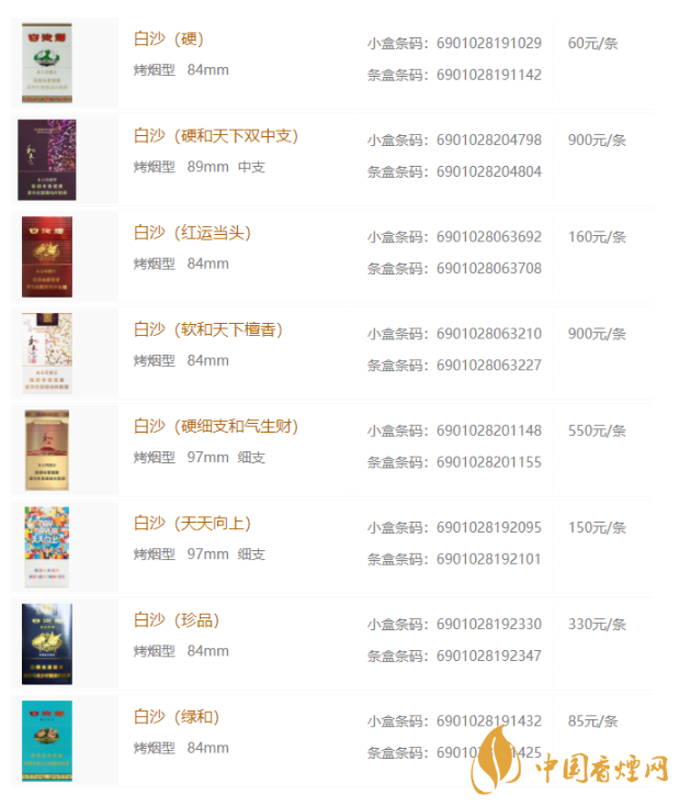2020年白沙香煙最新價(jià)格表和圖片大全
