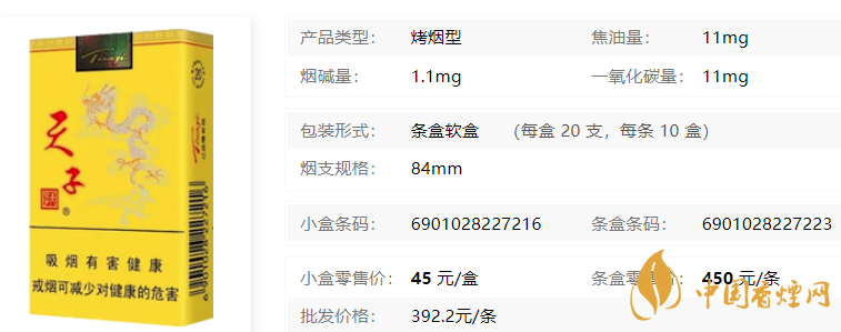 在了解了2020天子軟包多少錢之后,為了大家能更詳見(jiàn)的了解此煙,小編特意將天子香煙核心參數(shù)進(jìn)行了整理,以便于對(duì)它進(jìn)行更深入的了解。