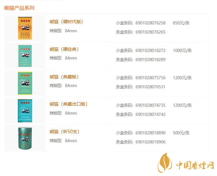 以上就是小編收集到的熊貓香煙圖片價格一覽,熊貓香煙多少一盒的相關(guān)內(nèi)容,以上數(shù)據(jù)均來源于網(wǎng)絡,僅供參考,小編溫馨提示,為了您和家人的健康,請您盡量少吸煙,更多相關(guān)信息請關(guān)注香煙網(wǎng)。