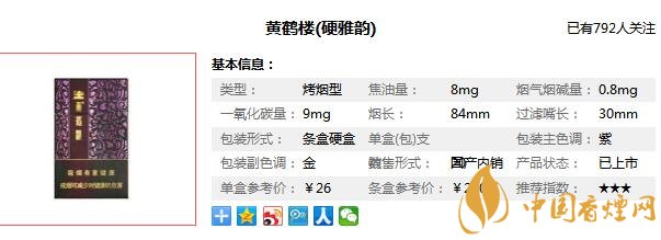 以上內(nèi)容是由香煙網(wǎng)小編為大家收集以及整理的關(guān)于,黃鶴樓硬雅韻多少錢一包以及黃鶴樓雅韻硬盒價(jià)格圖片相關(guān)的信息,了解更多有關(guān)信息請(qǐng)點(diǎn)擊:黃鶴樓雪茄型香煙價(jià)格表。