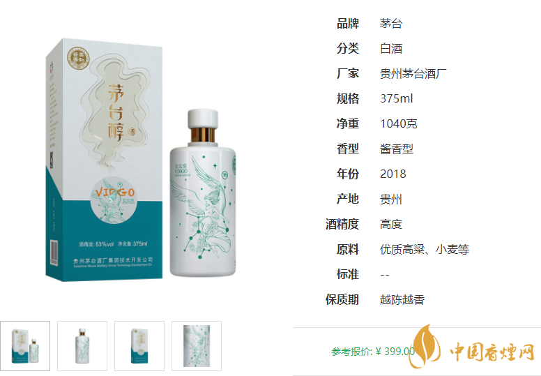 貴州茅臺醇星座酒處女座53度醬香型白酒375ml單瓶