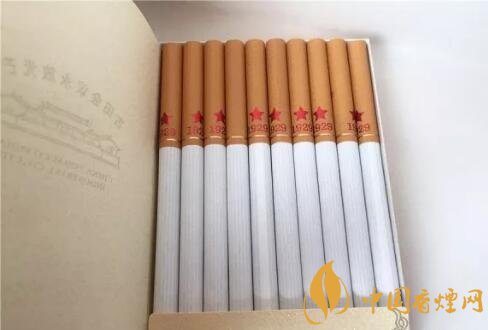 側(cè)開式煙盒設計,煙盒蓋內(nèi)部是紅色并印著金色五角星和1929,煙支被一張很具有復古色彩的紙張覆蓋著,上面有八個大字“古田會議永放光芒”,給人一種看黨章的感覺,設計簡約而不簡單。經(jīng)香煙網(wǎng)小編市場調(diào)查古田金中支售價為50元/包。