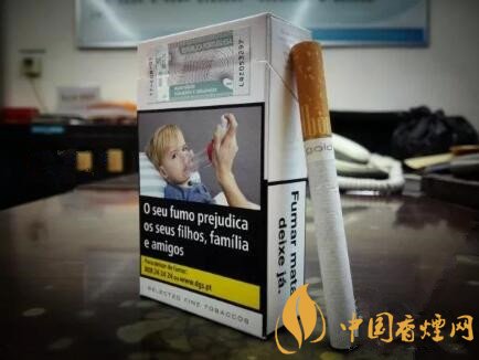 正面的包裝設(shè)計(jì),也是目前歐盟版本的標(biāo)準(zhǔn)式樣。翻蓋上的文字為葡語,內(nèi)容自然是關(guān)于吸煙有害健康了。