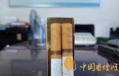 又是款淺金色調(diào)為主、修飾以深色金邊框的包裝設計,有些像芙蓉王硬黃的造型。圓圈中的金龍造型,更像是抽象畫法的,沒有真龍或者其它帶有龍的圖案香煙的豐滿與霸氣。