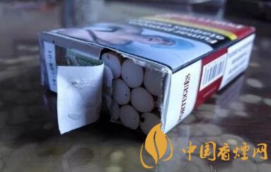 開盒方式與之前的丹麥軟紅萬一樣,向上拉起稅標紙,然后撕下半段錫紙,抽取出煙支。