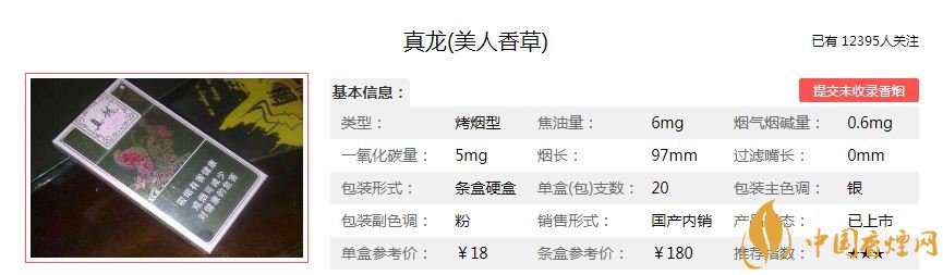 真龍美人香草,作為女士香煙,可謂是設(shè)計(jì)的十分周到,不光采用低焦設(shè)計(jì),還有淡淡的薄荷香氣十分清涼,包裝時(shí)尚精致,亦可以當(dāng)鏡子使用?;ㄏ銤庥?,清涼舒適,味道非常好,值得一品。經(jīng)調(diào)查真龍美人香草售價(jià)為18元/包。