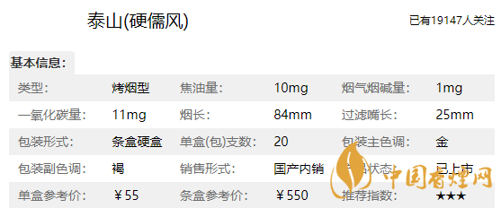 泰山香煙順應(yīng)以純凈為美的現(xiàn)代消費文化主流,儒風(fēng)泰山的配方和調(diào)香技術(shù)嫁接了緩解精神壓力的“香薰”機理,發(fā)揮SPA功效創(chuàng)造出一種“心悅神定”的氣氛。能夠依據(jù)五大產(chǎn)區(qū)的自然生態(tài)韻律協(xié)調(diào)五種主料的比例,調(diào)配出一種獨特的清澈口味,個性獨具、魅力非凡。茶香味很足,入口香氣清香口感綿柔,炫目的雙層設(shè)計,細細品嘗,煙氣清香,確實是一款好煙,感覺不一般值得嘗試。