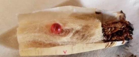 點(diǎn)燃一支,正常抽吸兩口之后,捏破爆珠。靜候2、3秒,讓爆珠成分浸潤(rùn)絲束,再抽吸時(shí),吸阻略微降低了一些。據(jù)說(shuō)爆珠萃取自香格里拉所產(chǎn)的雪山苷草,捏爆后煙氣自然甜潤(rùn),增添煙氣的層次感。剖開(kāi)濾嘴,是整段式的醋酸纖維絲束,濾嘴沒(méi)有降焦孔,絲束的顏色淡黃,顏色變化從煙絲端到吸入端,均勻變化、色差很小。這個(gè)根據(jù)賞玩品吸時(shí)的感受,這樣的濾嘴結(jié)構(gòu)在吸阻偏大的同時(shí)并沒(méi)有影響到煙氣的質(zhì)量,就比較難得了。