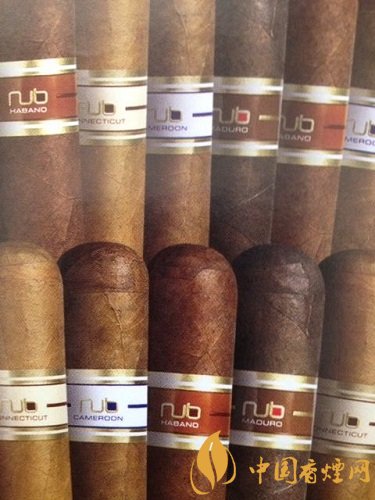 Nub雪茄命名方式非常直觀,所用的煙葉(系列)加上環(huán)徑就是雪茄型號(hào)的名稱。先是系列有喀麥隆、馬杜羅、康涅狄格、哈瓦那等,環(huán)徑又有56、58、60、64等,二者一結(jié)合就是名字,例如馬杜羅64。Nub雪茄值得嘗試的是他的大環(huán)徑雪茄,雪茄很短,屬于矮胖雪茄,味道非常直接,沖擊力夠,沒有一步步往上走的感覺,而是一下子就到山頂。