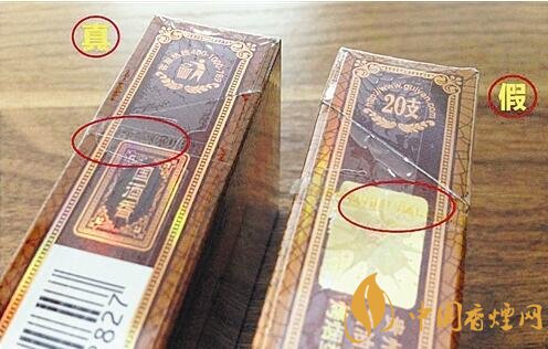 假冒:煙支過濾嘴上的“貴煙”二字和酒樽造型的“貴”字是印刷工藝,差距甚大。