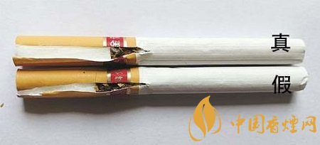煙支過濾嘴長度對(duì)比:真煙煙支采用單一醋纖濾過濾嘴,比假煙煙支過濾嘴長。