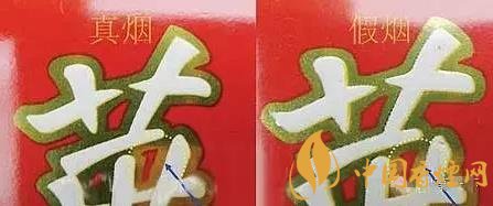 6、通過商標紙側邊字母印刷工藝辨別真假。真煙字體邊沿比較干凈,與紅色部分切換比較清晰;假煙字母印刷比較粗糙,字母邊沿多處脫漆,印刷字母比較粗大。