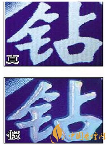 真煙鉆石圖案印刷清晰,色彩感強(qiáng),內(nèi)有微縮英文字母“DIAMOND”,圖案無(wú)凹凸感;假煙印刷不清晰,用手摸上去有凹凸感。