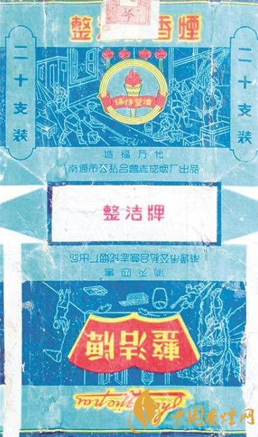 當時,南通市公私合營志成煙廠出品了一枚“整潔牌”煙標(如上圖)。這枚采用白描藝術(shù)手法設(shè)計的煙標,主版是一幅“造福萬代”的主題圖案:畫面中心掛有四盞紅燈籠,下部有一把裝飾著紅綢帶、帶有“保持整潔”字樣的火炬。