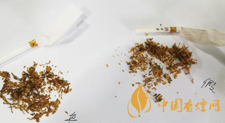 四、煙絲:真煙的煙絲切絲均勻、碎末少,油潤性好,看上去呈金黃色;假煙的煙絲雜質多、油潤性差,看上去顏色較淡。