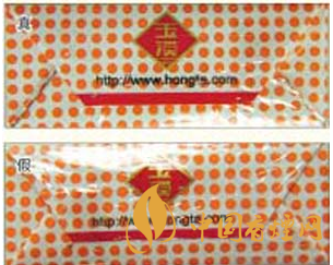 1.小盒外包裝所用的煙用包裝膜(透明紙)材質差異對比:真煙所用的透明紙摩擦系數較低,透明度高,用手觸摸可感到其表面較光滑,紙質較薄;假煙所用的透明紙材質粗劣,摩擦系數較高,用手觸摸可感到較滯手,紙質較厚。