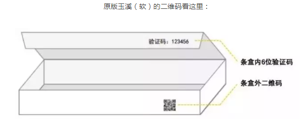 新包裝軟玉溪真假:原來的條盒外部的二維碼,現(xiàn)在變到了里面;且取消了輸入驗證碼的步驟: